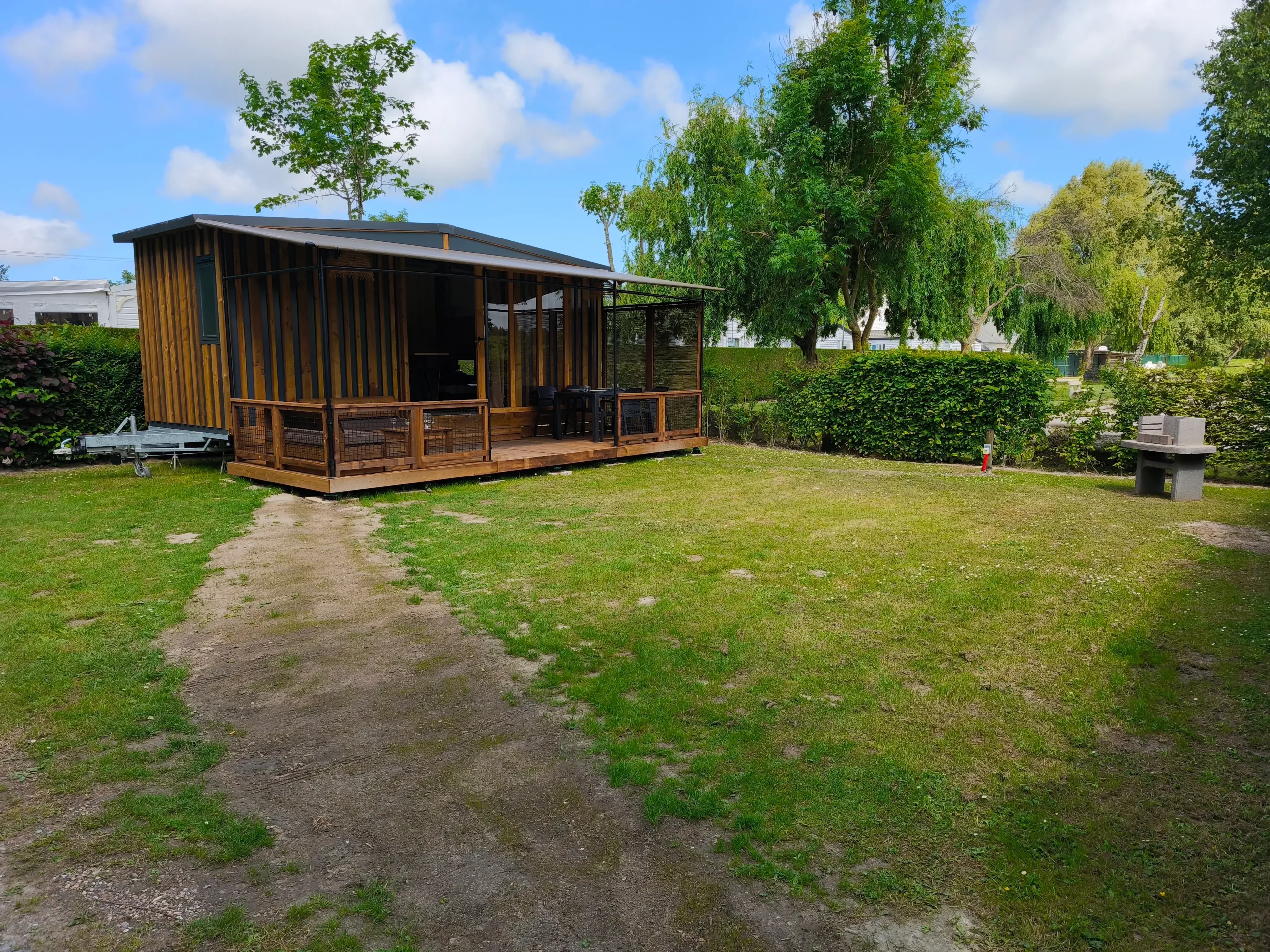 Nos locatifs sont installés sur des emplacements spacieux, pensés pour préserver votre intimité au milieu d’un environnement naturel et reposant. Les chiens ne sont pas acceptés dans les locations.